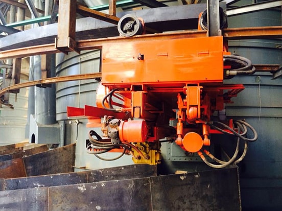 懸掛式開堵眼機安裝現(xiàn)場,國內首創(chuàng)的軌道式全液壓開堵眼機,非常適合16500-33000kva中大小型礦熱電爐使用。...